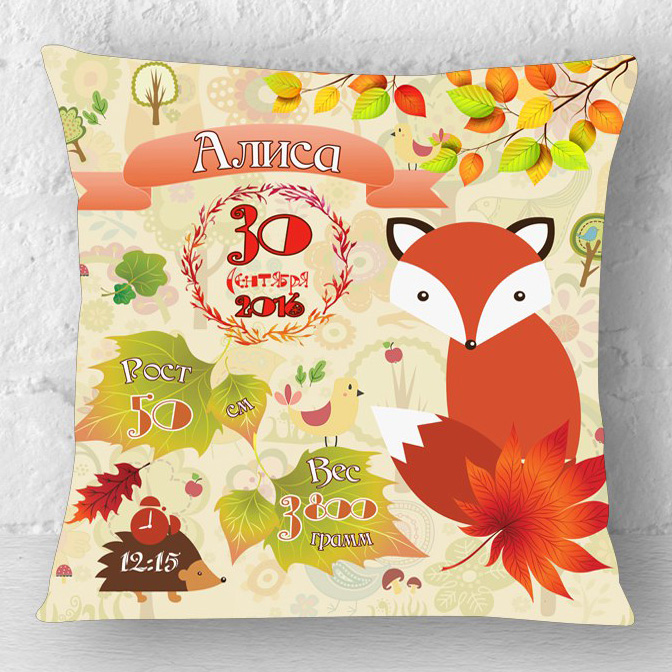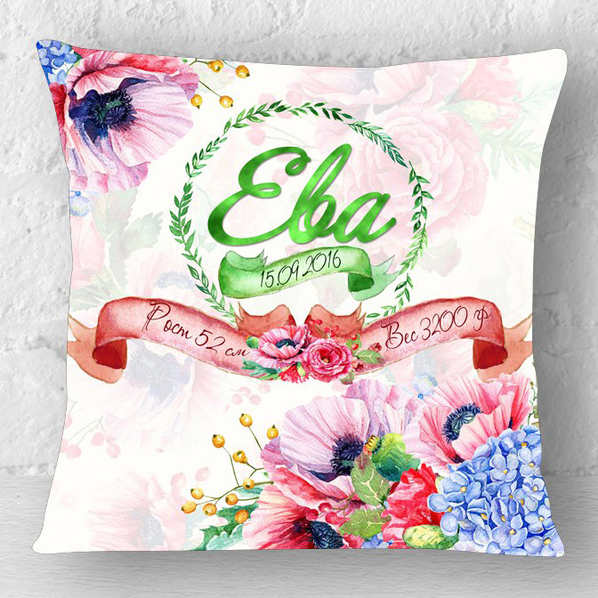 Доступные размеры: 30x30, 40x40, 50x50 сантиметров. Материал: габардин, атлас. Наполнитель - холлофайбер.